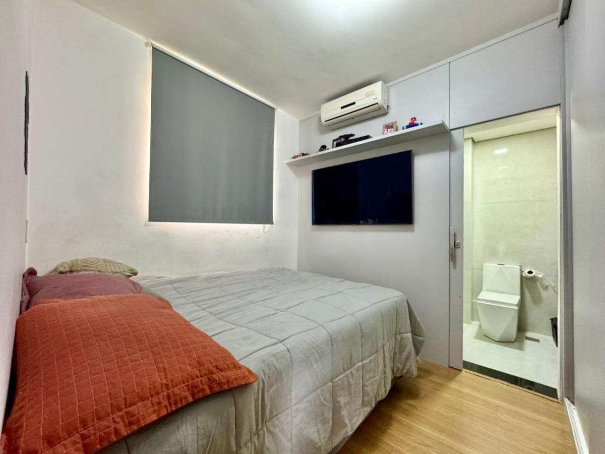 O imóvel tem 2 quartos, sendo 1 suíte, possui 1 banheiro, 1 sala e 2 vagas de garagem.